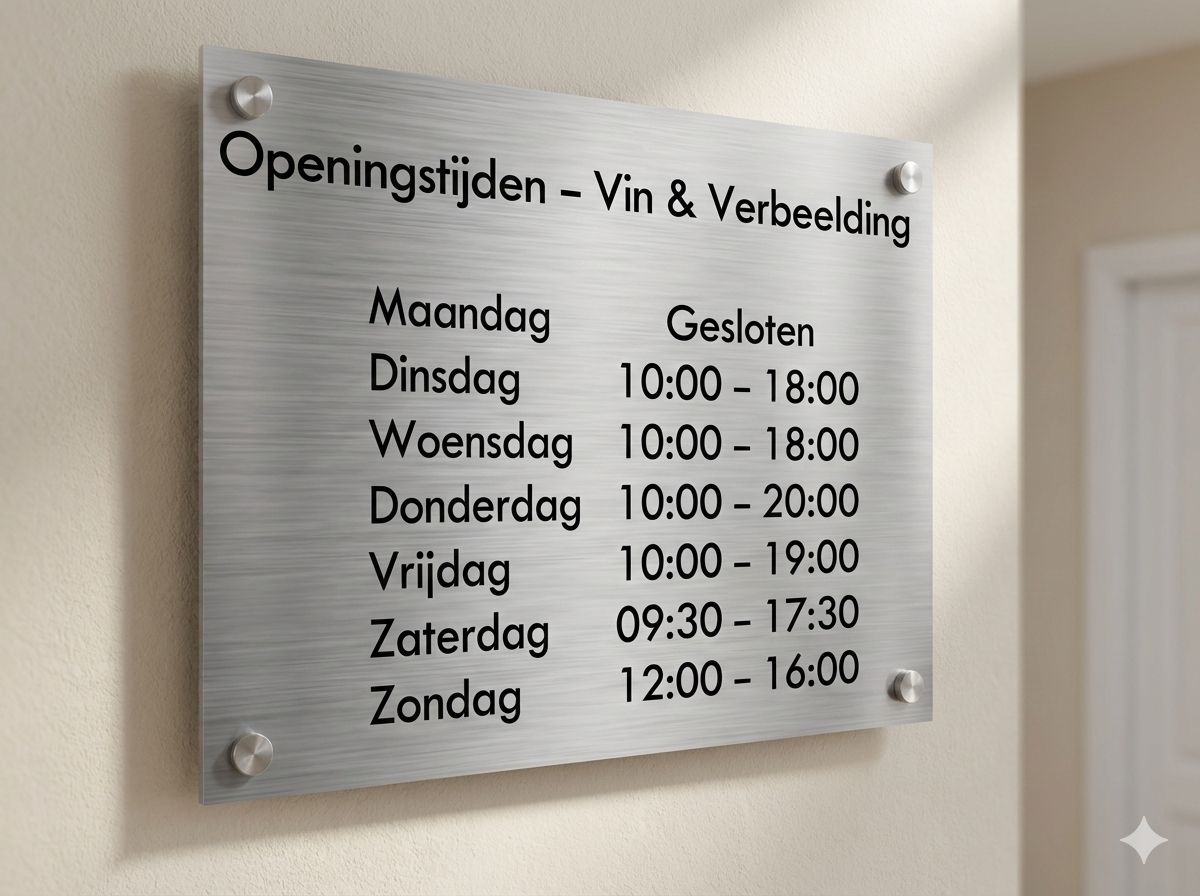 Welke stijl je ook kiest, het ontwerp van je bedrijfsbord moet aansluiten bij jouw huisstijl. Een goed bord bevat een duidelijk leesbare bedrijfsnaam, eventueel aangevuld met een logo en openingstijden. Rust en overzicht in het ontwerp zorgen ervoor dat de informatie snel en moeiteloos wordt opgenomen.