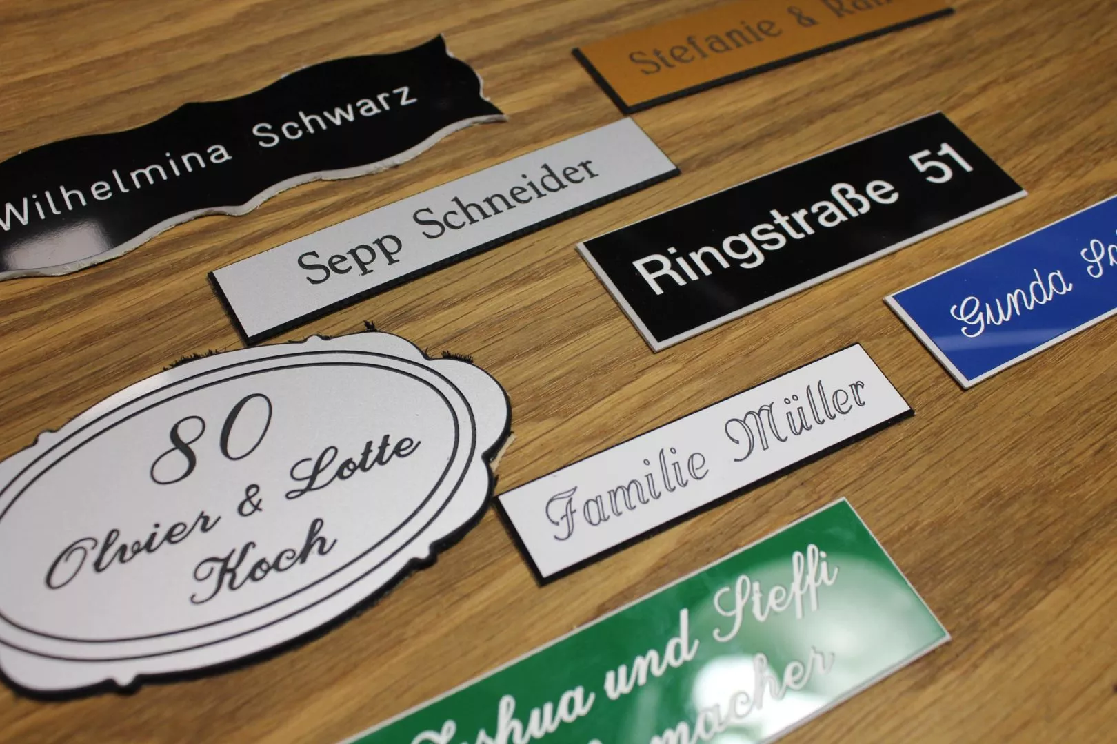 MijnNaamplaat.nl opereert vanuit een eigen werkplaats, waardoor we snel kunnen schakelen. Met bijna eindeloze mogelijkheden staan we vijf dagen per week paraat om te helpen met ontwerpen of het beantwoorden van jouw vragen.