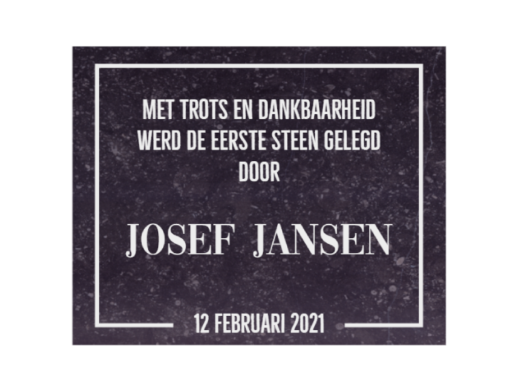 De “Eerste Steen” is vervaardigd uit hoogwaardig Belgisch hardsteen, met een plaatdikte van +/- 20 mm. Dit zorgt niet alleen voor duurzaamheid maar geeft de steen ook een tijdloze uitstraling. Het gebruik van dit kwaliteitsmateriaal garandeert een langdurige en stijlvolle herinnering.