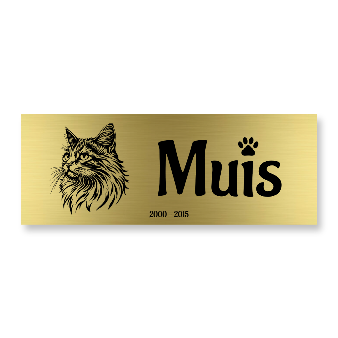 Messing, een hoogwaardige legering van koper en zink, staat bekend om zijn duurzame karakter en warme goudkleur. Hierdoor is het bijzonder geschikt als materiaal voor een dierengedenkplaat die jarenlang mooi blijft.