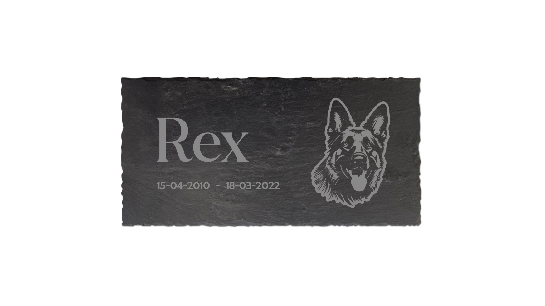 Leisteen staat bekend om zijn natuurlijke charme en duurzaamheid. Onze gedenkplaten worden gemaakt van hoogwaardig leisteen, waardoor jouw herinnering aan een hond, kat of paard een stijlvolle en tijdloze uitstraling krijgt. De zachte grijstinten en unieke textuur van het materiaal zorgen voor een rustgevende en serene sfeer.