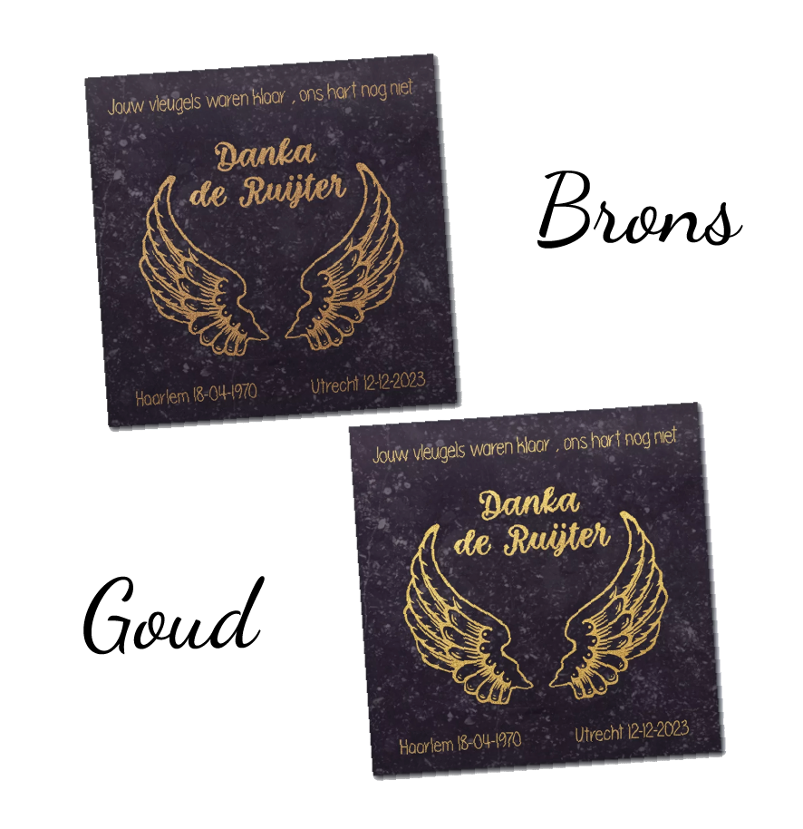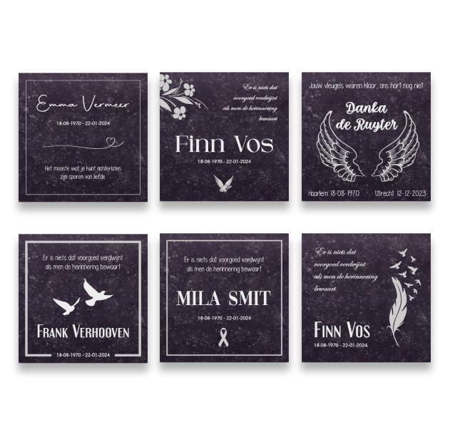 Of je nu op zoek bent naar een bescheiden gedenksteen vierkant voor in de tuin of een imposante steen voor een publieke ruimte, onze collectie biedt formaten die passen bij elke herinnering. Kies uit 20x20cm, 30x30cm, 40x40cm en 50x50cm, zodat je de perfecte afmeting kunt vinden om jouw eerbetoon te realiseren.