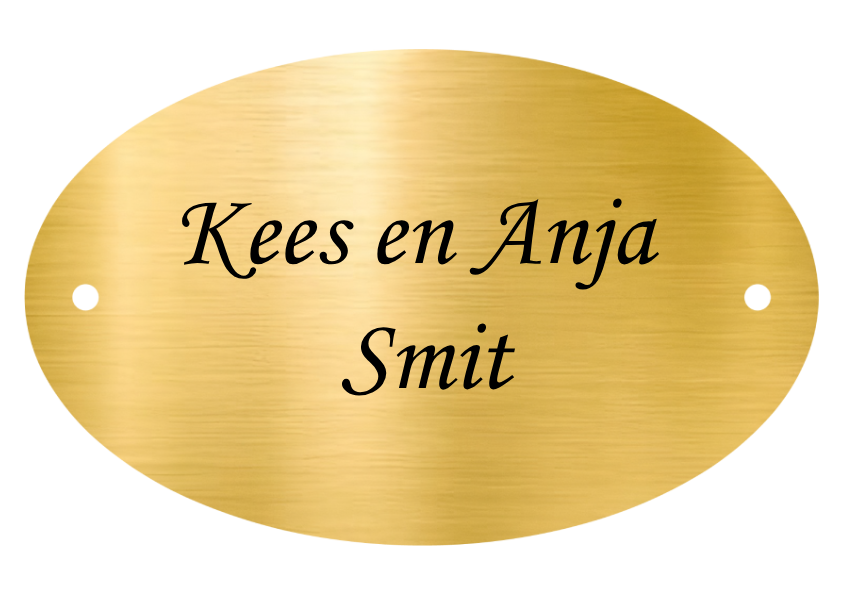 Een ovaal messing naamplaat geeft uw voordeur of gevel direct een luxe en klassieke uitstraling. Bij MijnNaamplaat.nl maken wij hoogwaardige messing naamplaten die niet gefreesd maar gelaserd worden. Daardoor ontstaan haarscherpe lijnen, verfijnde details en een elegante afwerking.