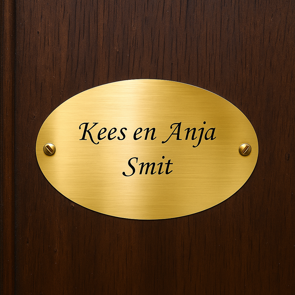 Ovaal Messing Naamplaat – Stijlvol, Duurzaam en Haarscherp Gelaserd